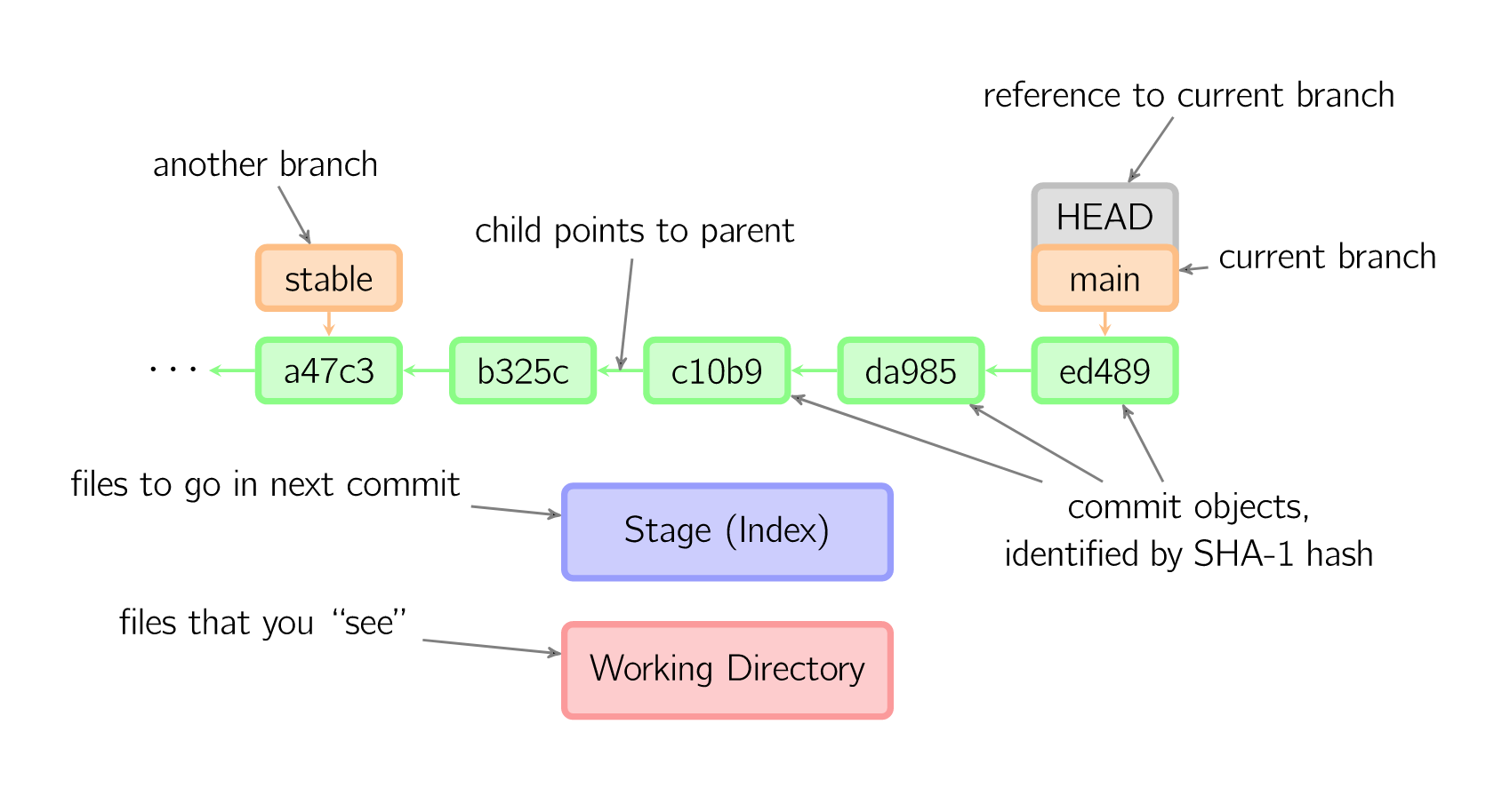 add a remote by getting the SSH url from the repository (green button) online.origin is the name of the remote server. your choice, but origin is common..git (i.e., the entire history of the repo) on that remote machine.-u flag sets the main branch as default upstream branch to track.$ git checkout -b testing # checkout repo on new branch `testing`